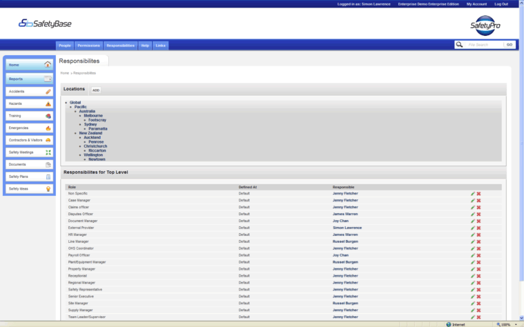 The Locations page allows you to set up your own locations in a hierarchy and allocate your people to roles and locations. This helps your SafetyBase communicate with the right people.